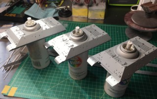 My local hobby shop (King's Hobby) here in Austin recently had a sidewalk sale. I picked up a box of Tamiya M36 parts, including three top hulls. I'm actually pretty excited about these.... they're going to make great paint hulks to test and practice airbrushing on before they hit the real models. And the best part? They fit perfectly over a can of primer. So using empty primer cans as a holder, I can paint all to live long day. Yeah, it's the little things...