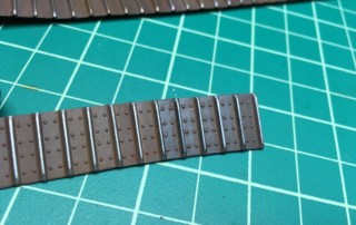 While scratchbuilding may make you feel like a god, making plastic look like real metal is a sign of reaching all-powerful status. Dramatic? Yes. Well deserved? Yes. Or at least I think so... I'm working on the Takom Mk. 1 Male and am about to start painting the hull. But with the house up for sale and me spending a lot of time at the fiance's house, smaller bite size projects tend to take precedent. Such was the case this weekend when I started working on painting and weathering the tracks. (Very nice click tracks, by the way) Step 1: Primer I sprayed my standard Touch n' Tone on the tracks and left them to dry and cure for a few days. Step 2: Airbrush base color Using my airbrush, I sprayed a haphazard pattern across the entire run of tracks (repeating all the rest of the steps for right and left [...]