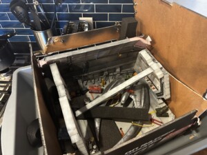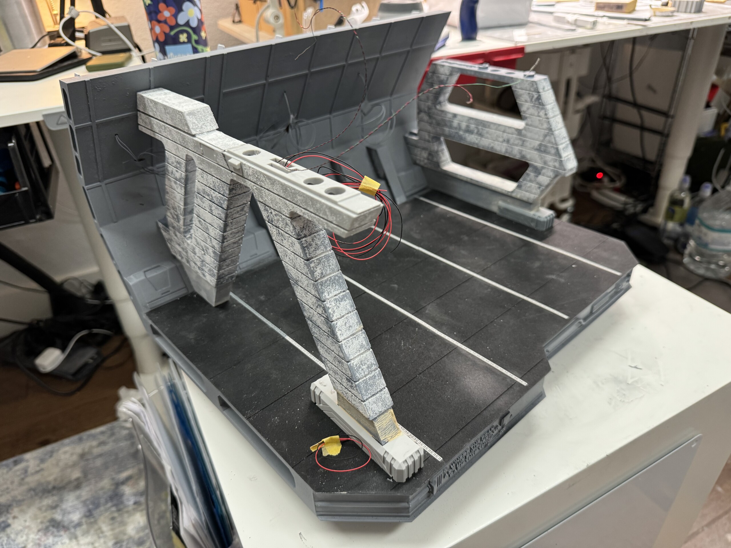 In mk.2, the wiring for the lights was really well thought out (for the back wall, not so much for the horizontal base. We’ll get to that). In the back wall, I hollowed it out so I could easily run the wiring for the three lights through the interior of the wall and down into the horizontal base. Much different than just carving a channel in the foam of mk.1. The worst part of this process was removing the supports needed to print that hollow space on the Bambu, made particularly difficult with the three different angles on the wall halves. But once that was out, running wire was instant. It was heavenly simple.