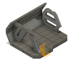 For the mk.2, I designed the back wall “popouts” and printed them on the FDM printer. Detail was pretty great and layer lines weren’t too much of a problem. And the great thing was that I only had a print out three pieces to glue in place quickly. I also painted them blue to match the show’s ship better this time around.