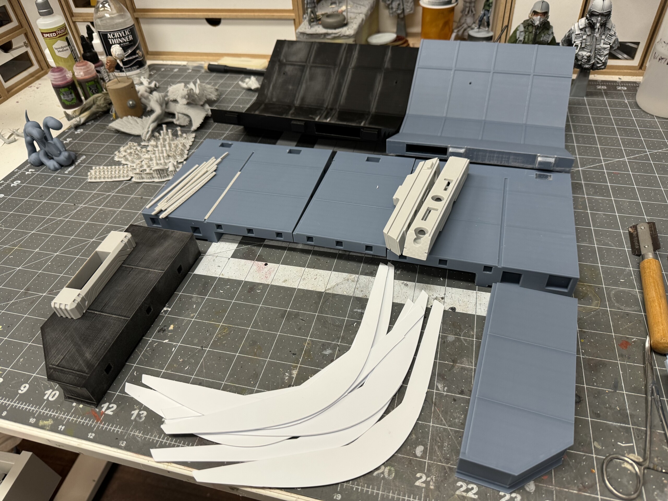 You’ll notice the white sheet styrene Cricut cut back wall exterior ribs. I opted to not include the ribs in the FDM printed wall sections. This was for a couple reasons: