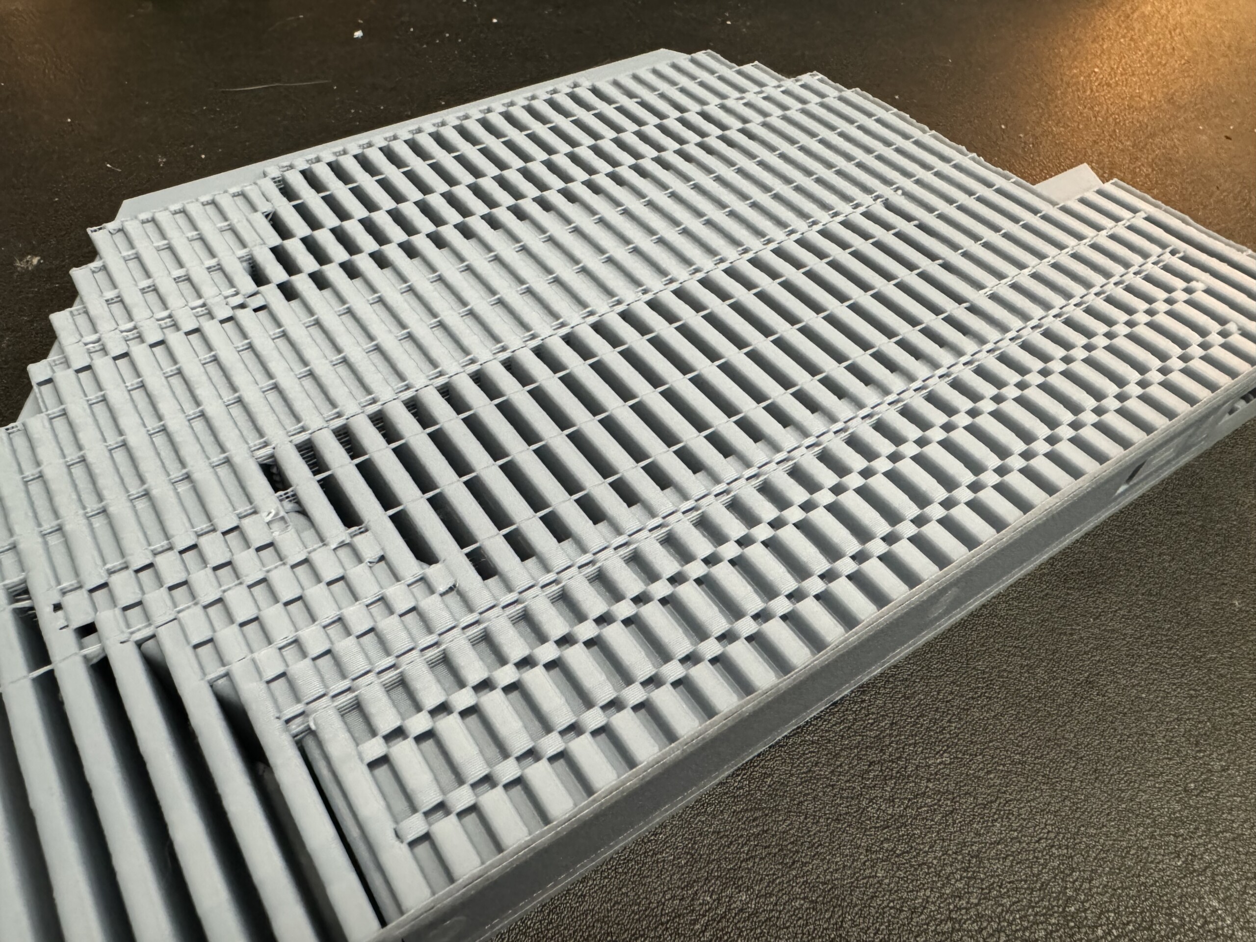 Since I hadn’t done something this big on the Bambu, and because the filament printing is so much stronger, it was a bit green field… so I had a take a second to design something smart. I got most of the way to smart, although I learned a lot of lessons along the way, especially about the best ways to connect and align the various pieces.