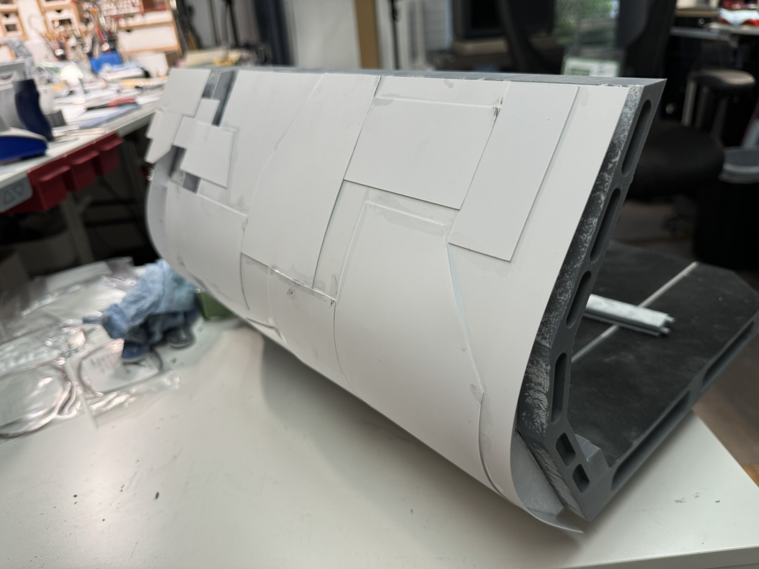 One change I did add that was wonderful was adding guide channels for the ribs that were printed into the wall itself. This made it much easier to get them glued on straight without having to measure and use a level, etc. One dumb choice on my part, driven by a need to shift my mindset about how I’m designing in Fusion vs. scratchbuilding is that the channels could have been much deeper and therefore more helpful. Live and learn.