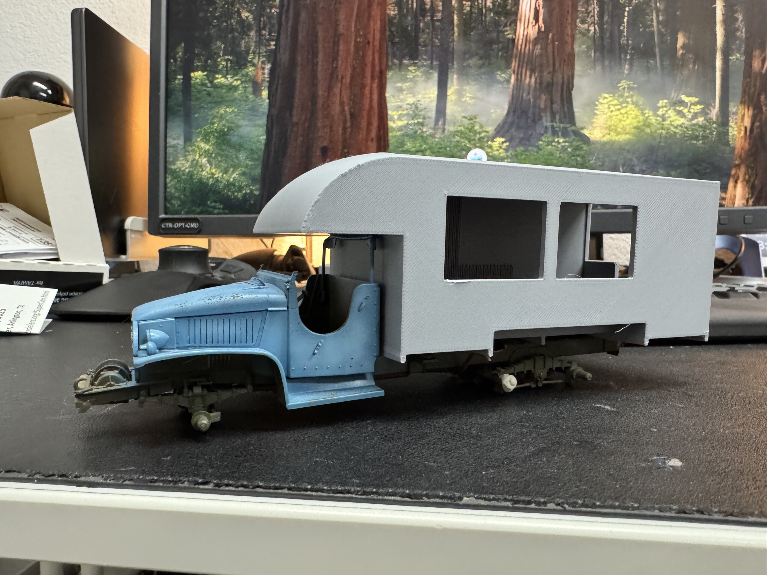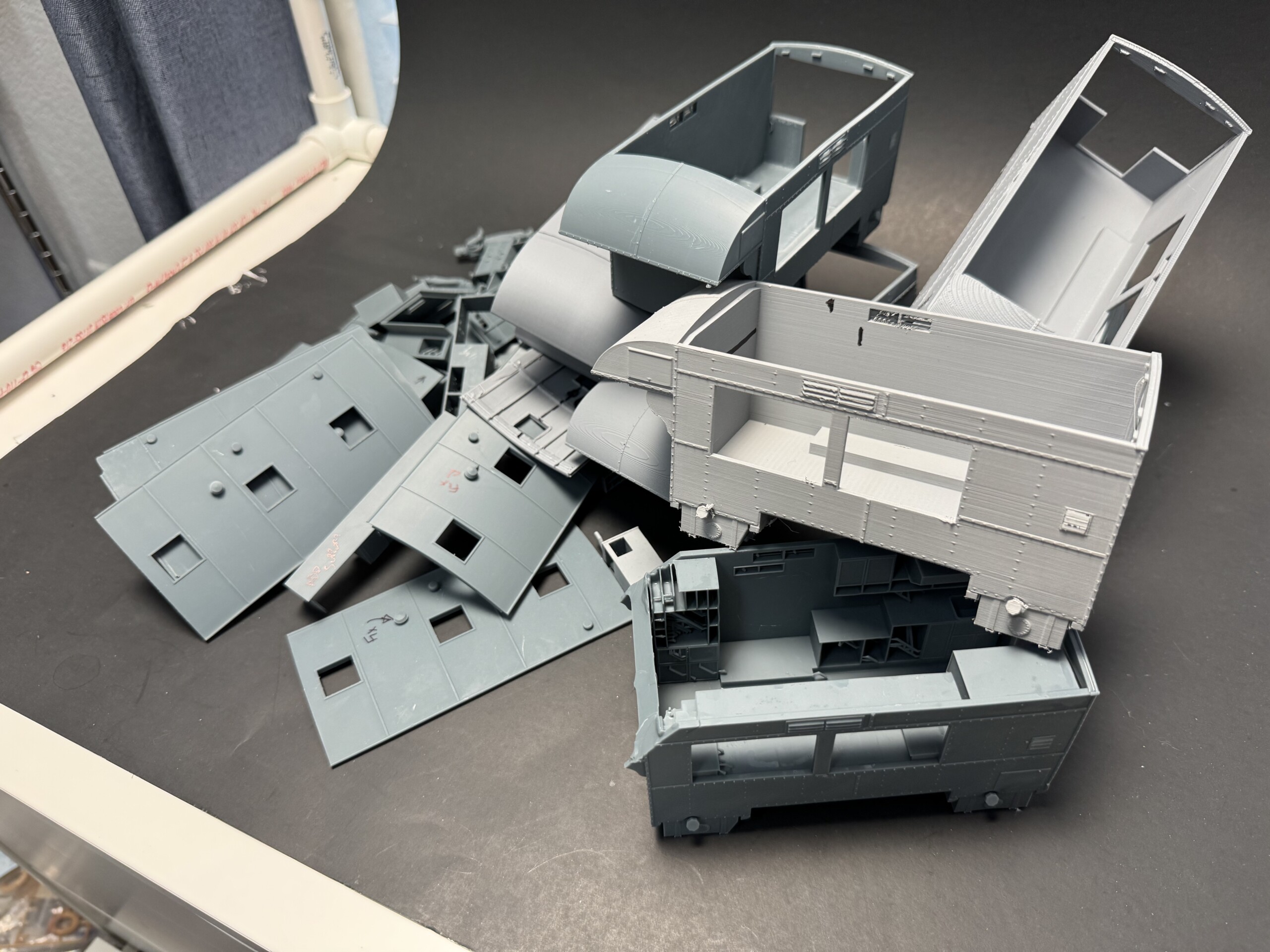 This project is the single project I’ll be bringing to Scale Model Challenge (SMC), my first time to visit this world class show. As I was winding down the CAD/printing work for the “box”, I started looking more at the cab itself. I’d jumped ahead, despite other desires, to building the cab and chassis because I needed them fully built out to measure against for the box CAD work.