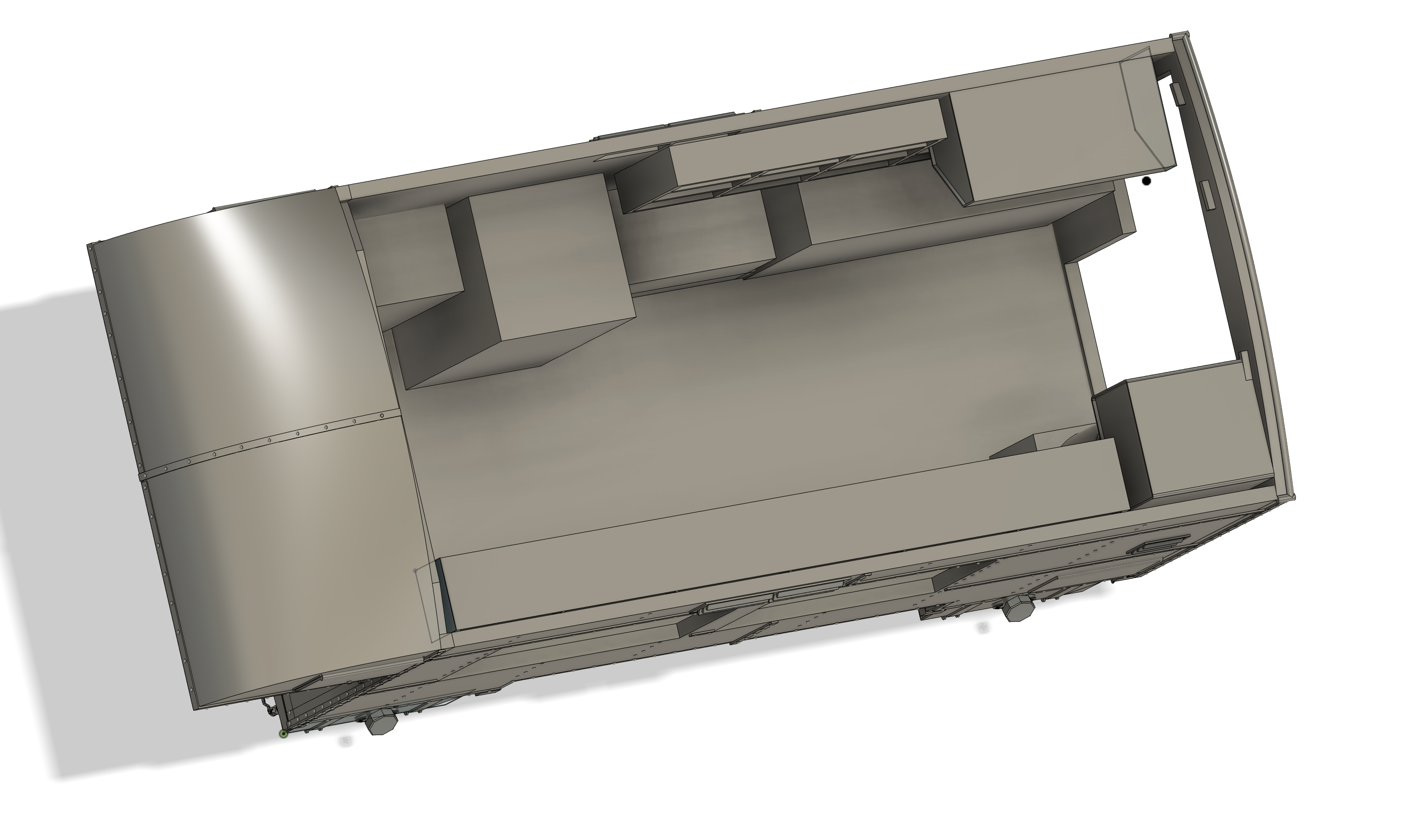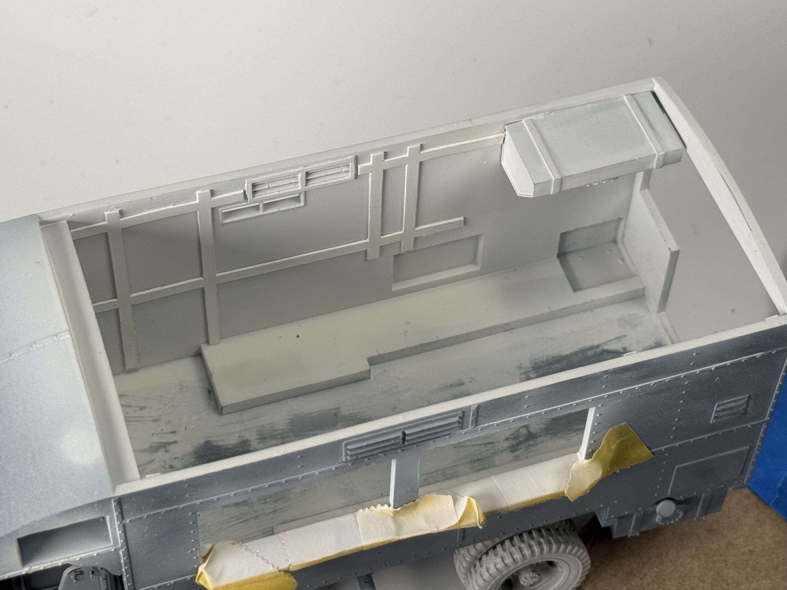 With a solid amount of the external work done and the basic shape of The Box dialed in, I needed to switch to the interior. I needed to get a sense of where everything was and make sure it would fit… and that I didn’t need to make adjustments. For example, my roof detail work is way off so I need to fix it. But I can’t do that until I have the interior further along.