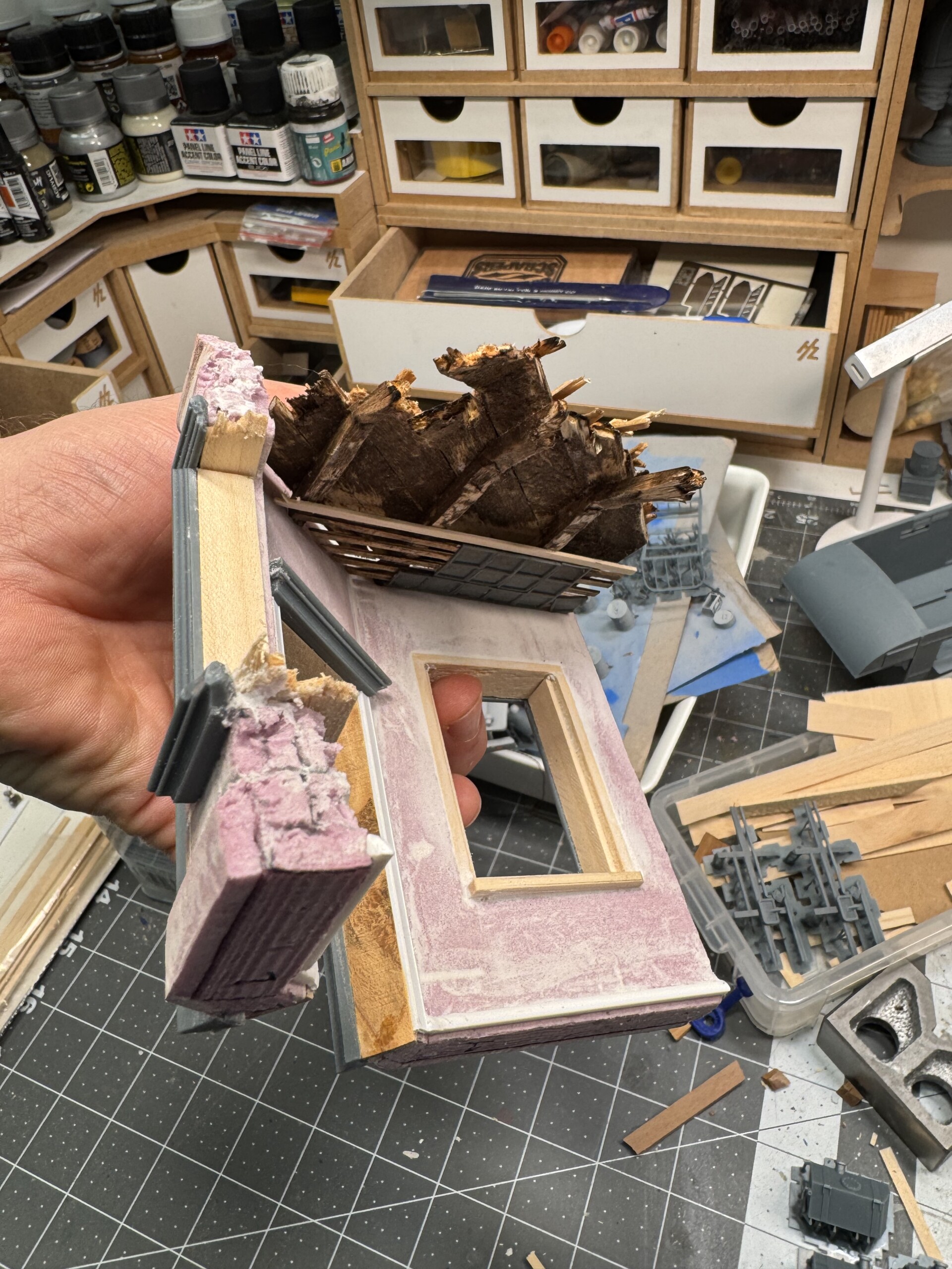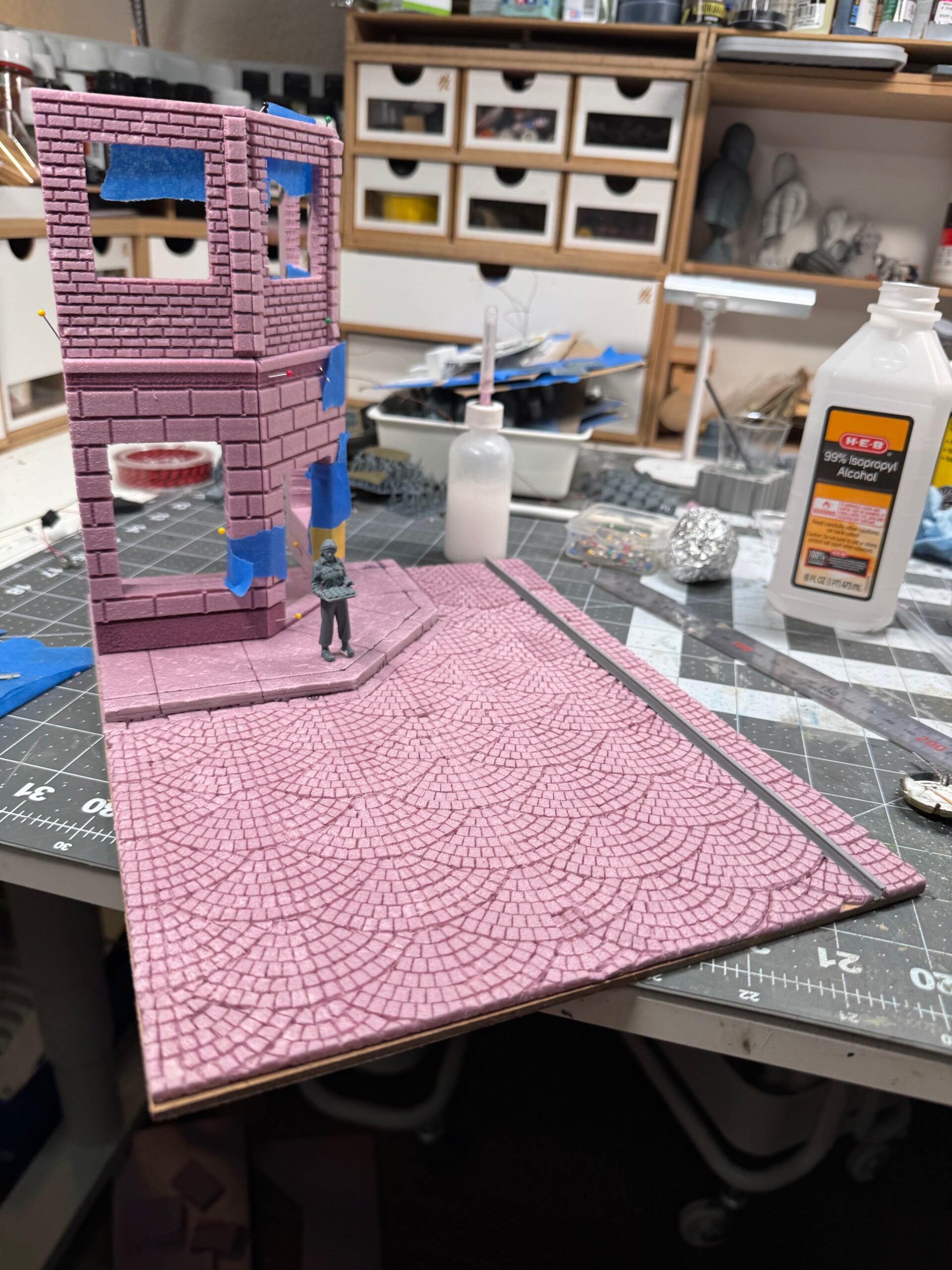 Pretty quickly, I realized I needed to create a base that was separate from the diorama build itself. That way I could stick the base in my travel backpack and then carry the diorama in the travel box.