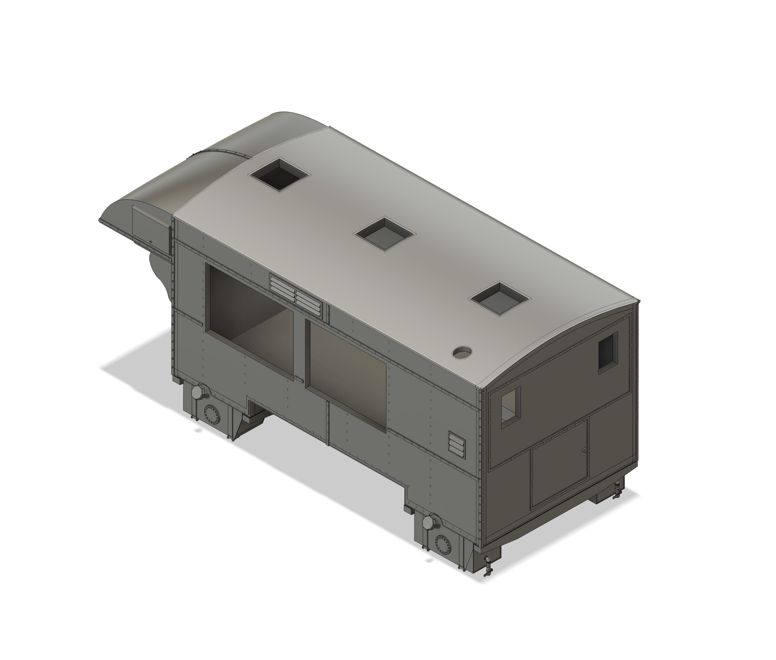 Now was the time for the details. This is when the reference photos came in super handy. Given that there were ~100 of these made, I assumed they’d all be factory line consistent in how they were constructed. Mostly true, but some vehicles had some details, others didn’t. So I had to make some decisions. I also oversized the rivets a bit to give them some more obvious pop once painted. The restoration vehicles have much smaller ones than the ones in the historical photos. I think. It’s honestly hard to tell, so I am doing what feels right.