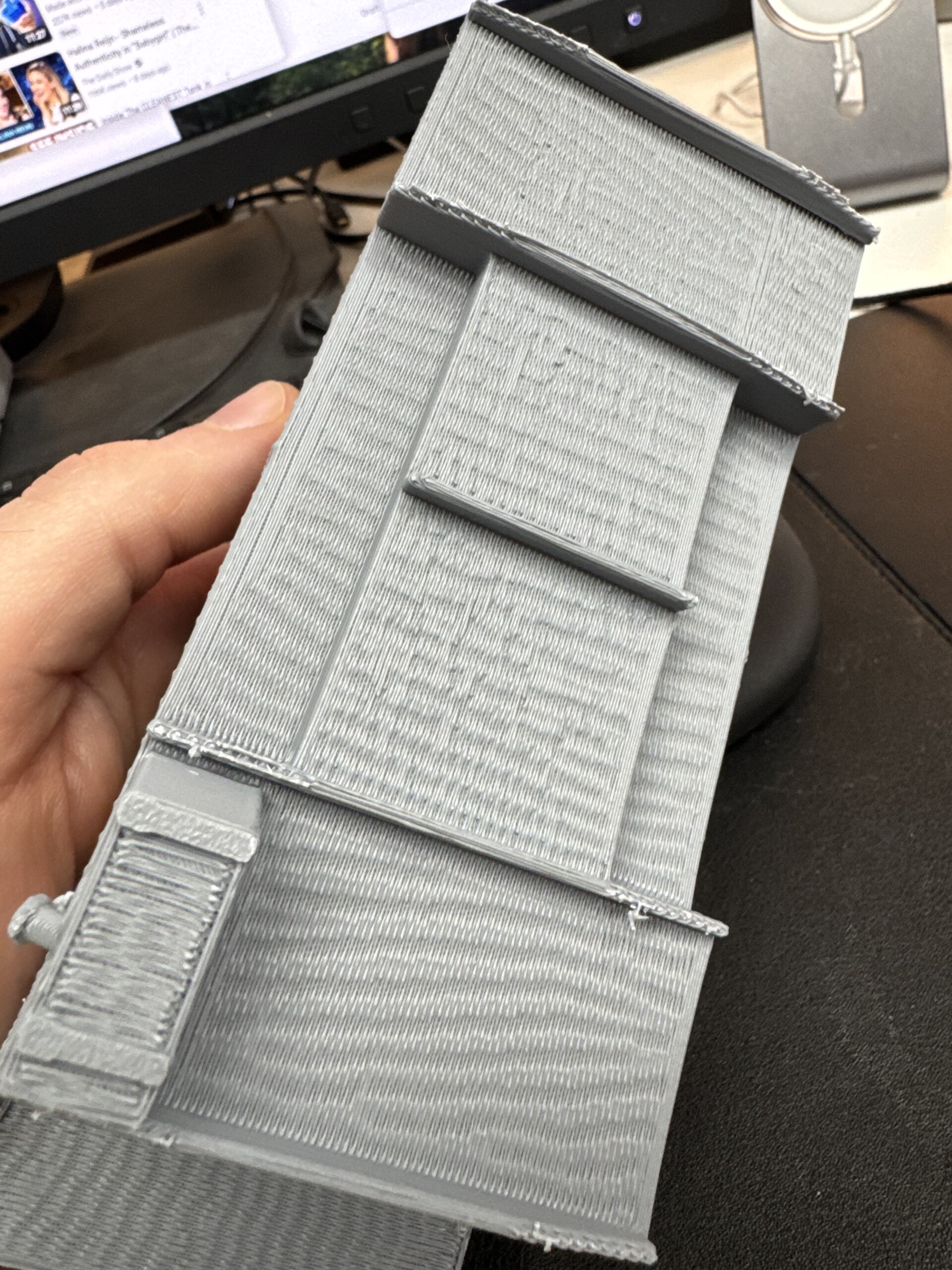 I ran another test print, this time in resin, to see if a box shape like this would actually print worth a damn. SUCCESS! It printed surprisingly well. Even if it just BARELY fit in my printer. This “barely fits the printer” has become a theme, so I was driven to order a large build plate printer. Hey, you do what you need to, right??
