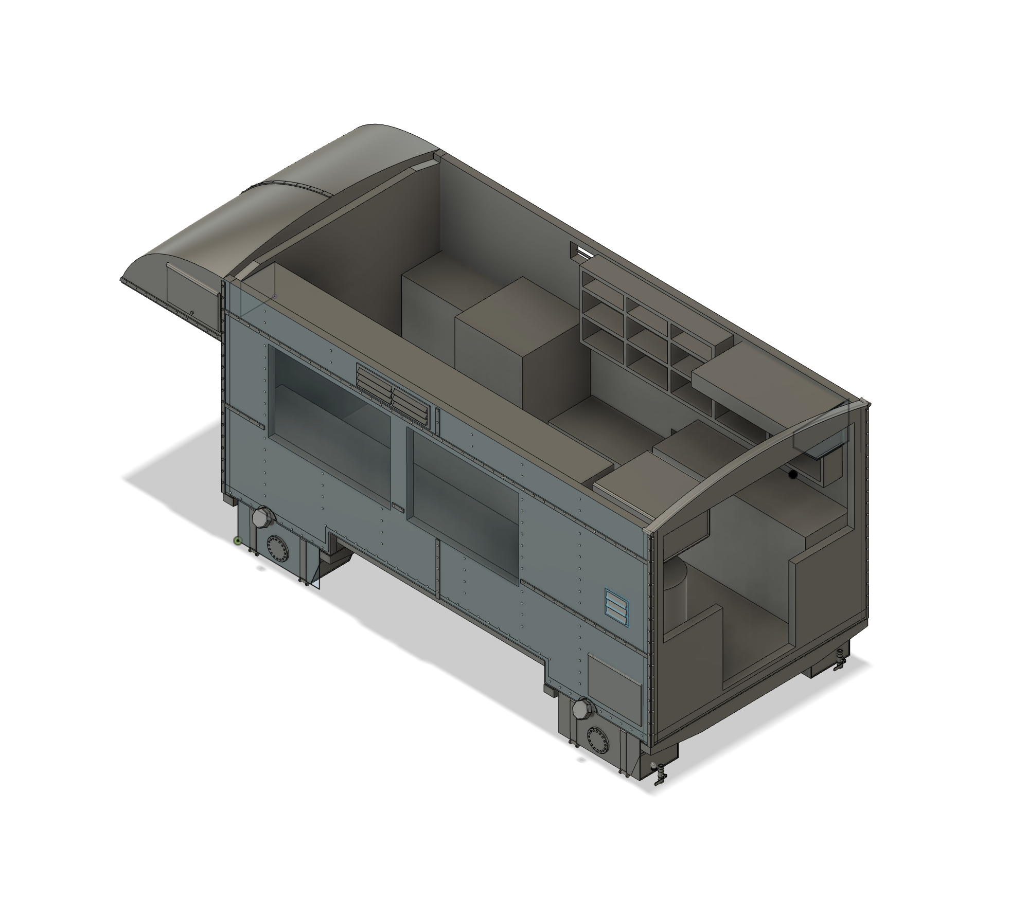 For this project, I’m designing the entire Clubmobile “box” (as I’m calling it) from scratch with Fusion 360. This has required a great deal of research since this vehicle isn’t documented very well. There are a decent (although surprisingly small) amount of exterior photos, but the interior photos are nearly non-existent. I’ve reached out to museums, restoration/reenactor folks, and searched for hours online to find good photos. I’ve found a few which has allowed me to move forward with some data and some assumptions.
