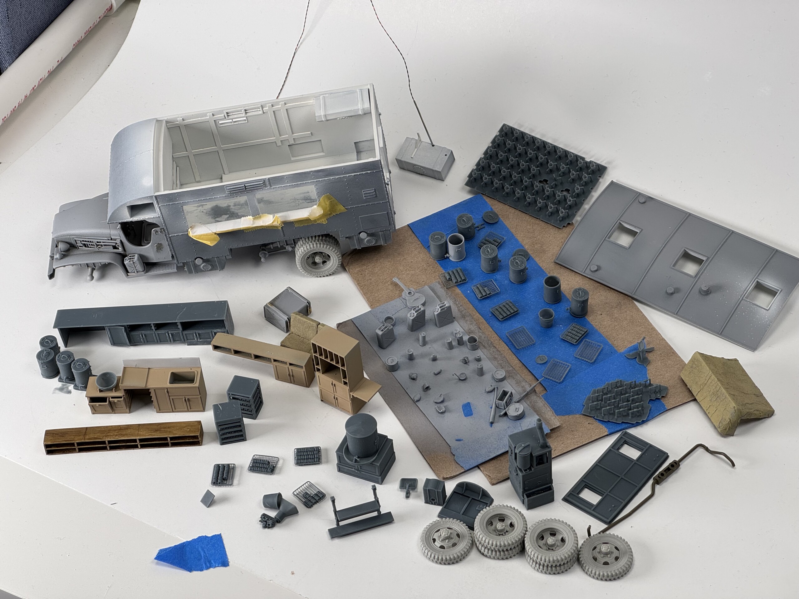 This project was bound for Scale Model Challenge (SMC) in Europe. Which meant I had to design it for carry on travel and carry on travel box sizing. This was going to be a tough test of my concepting skills. The Clubmobile was a decent size vehicle and I wanted to have a bunch of figures that showed the chaos of the scene around a Clubmobile when they rolled up.
