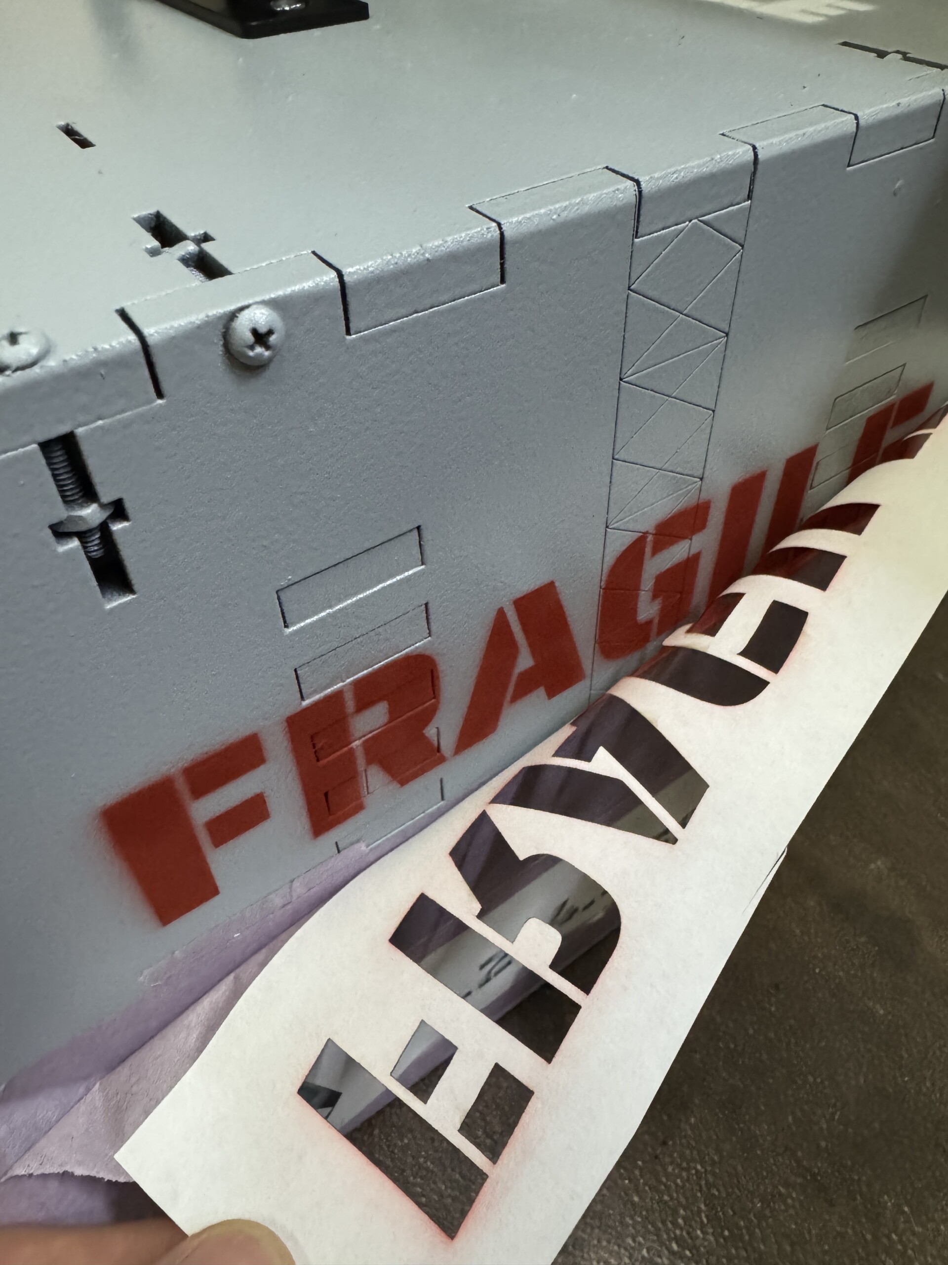 During this project, and thanks to a smokin’ hot Facebook Marketplace deal, I picked up a Glowforge Aura laser cutter. This entry level 5w laser has been wonderful for a range of things. But not so much for the stencil cutting. Short version: because the underpowered laser, I had to make multiple passes to cut the stencil material (Tamiya/Mig sheet tape) and in doing so the adhesive heated up and became gummy. This meant that the stencils wouldn’t stick and didn’t create sharp, tape-only edges. The gummy glue created “edges”.