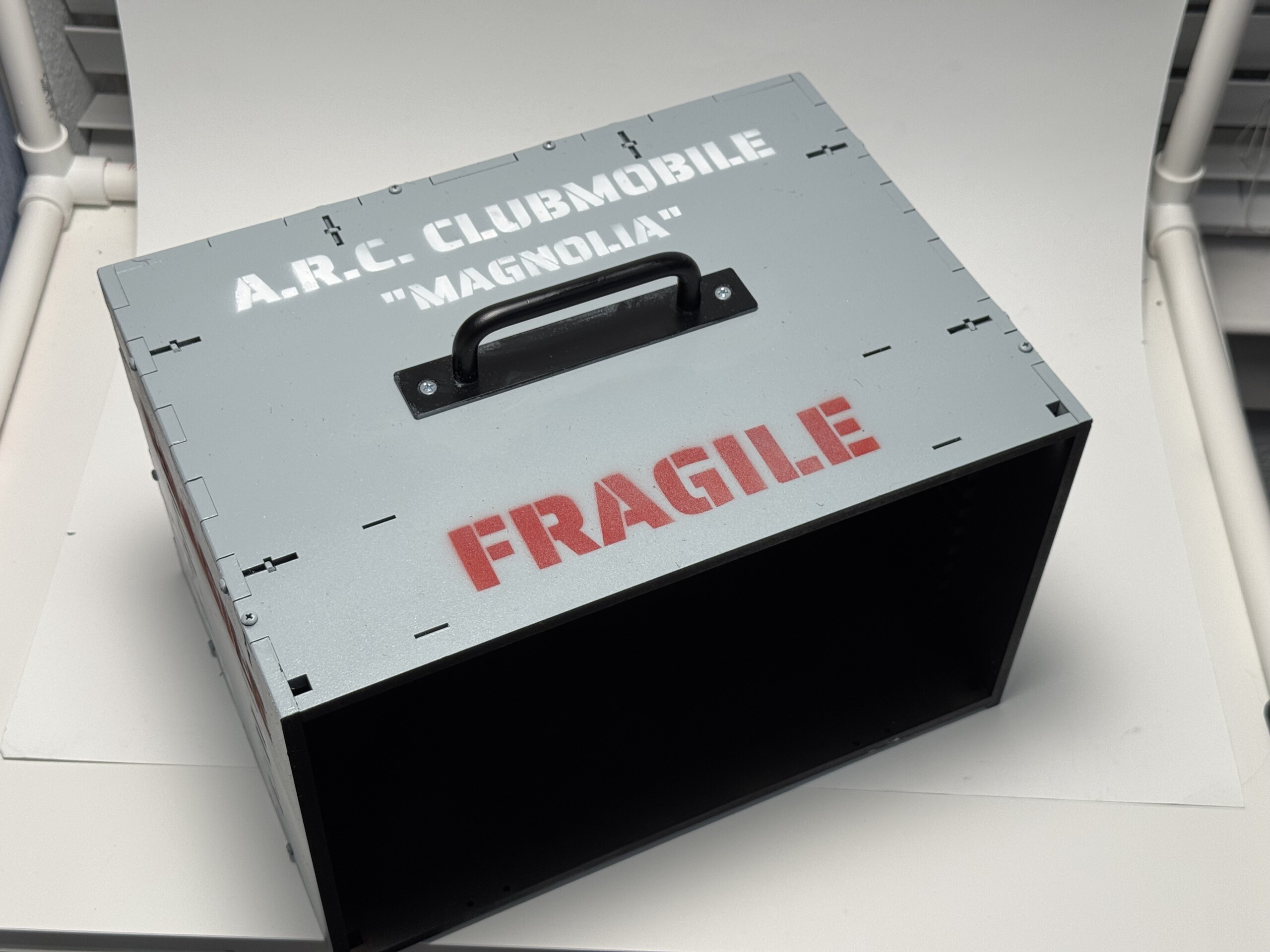I also used my AK paint markers to “touch paint” the ARC logo. If you look closely, you’ll also see a QR code I laser engraved on a piece of wood that led to this blog.