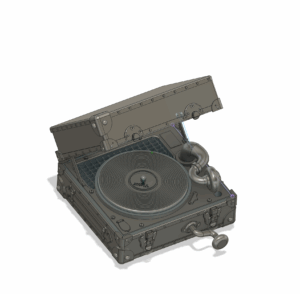 Onto the CAD work for the phonograph. Or more specifically, the Army Model D-200 Acoustical Phonograph Player by L.M. Sandwick. This one was relatively simple (save the clusterfuckery required to make the needle arm) and had plenty of great pics online!