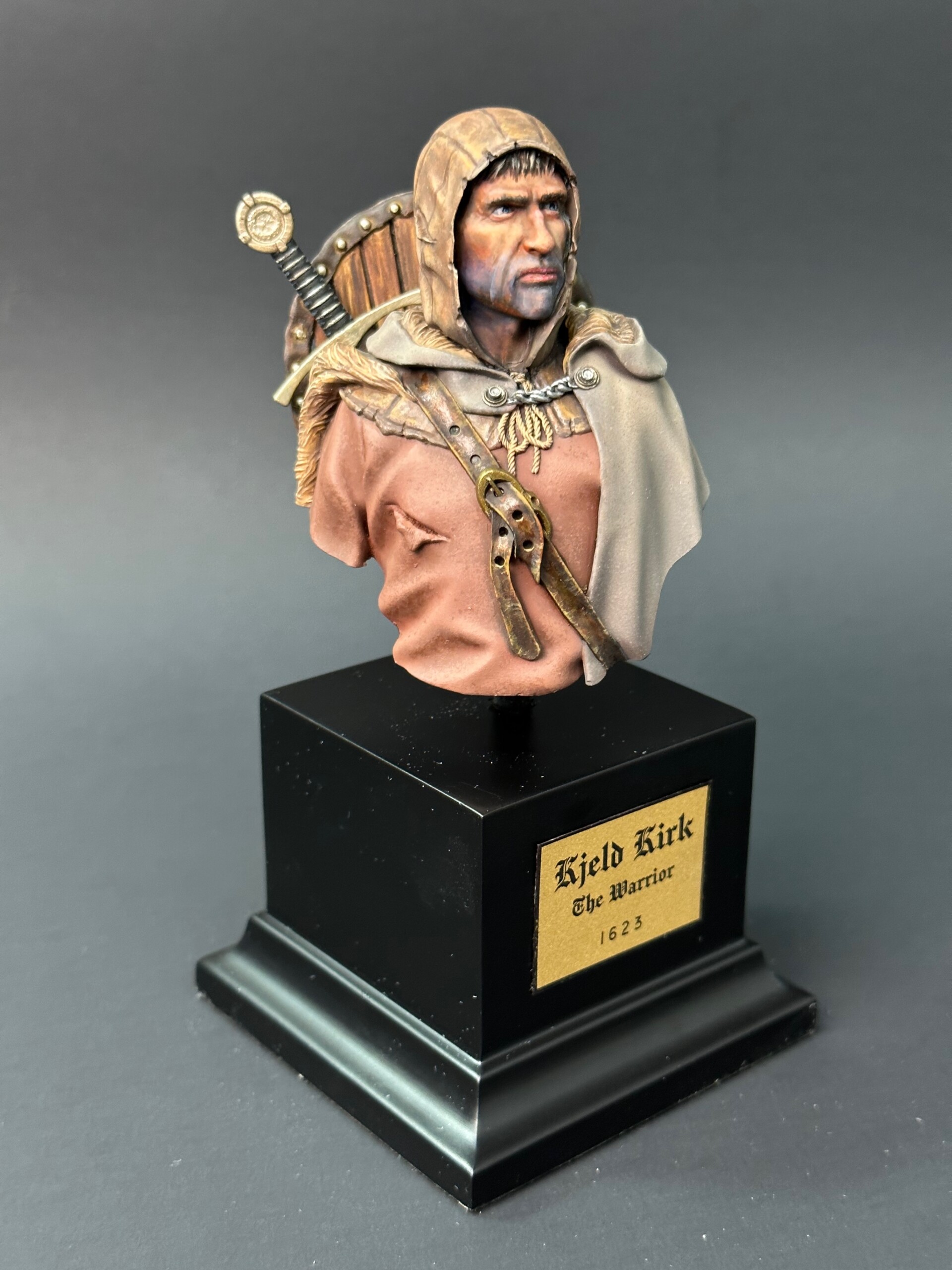 This figure is one of Sabot Miniatures’ designs, the medieval soldier. It’s a solid one. The amazingly talented Jim Rice used it as the subject for a recent painting workshop arranged by Lionheart Hobby. It was a great time! Here’s the rundown of how I painted this bust!