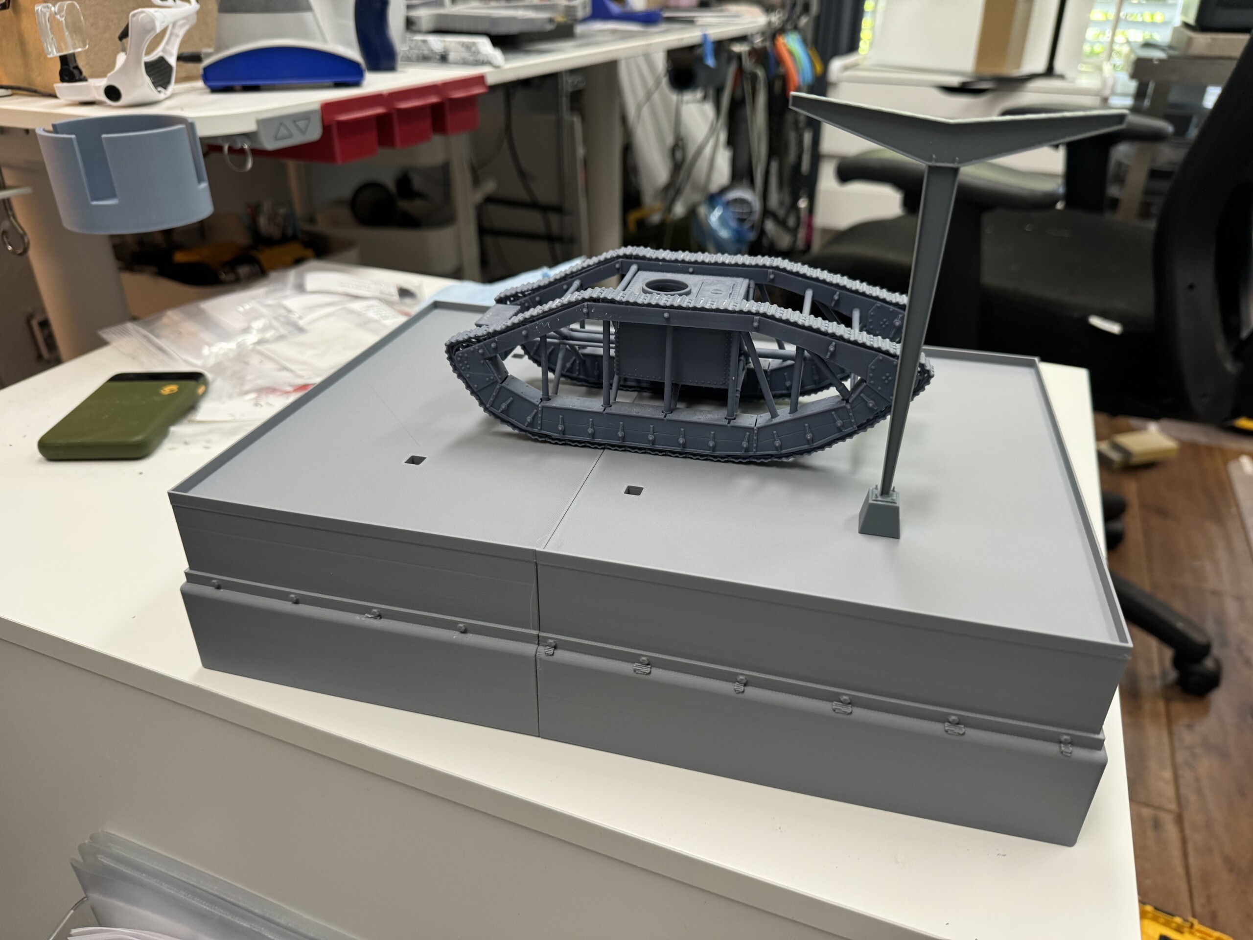 The reference picture showed a concrete mounted description plaque near the tank, so I knocked out in Fusion. It’s hard to see because it’s DAMN small, but the text is legible. With magnifiers.