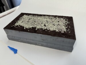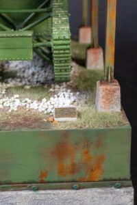 I used AK Concrete texture paste to texture the base concrete area. This stuff is pretty great. Apply with a brush, let it dry at least 12 hours, then sand down the highlights and bam, great concrete texture. Be sure to give it some real cure time. Trying to manage this stuff without proper cure time will lead to disaster. It’s dry to the touch quickly, but rubbery for a while.