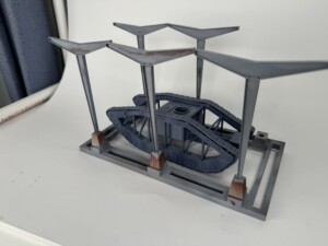 As the base was getting closer to be wrapped up, I turned my attention to cleaning up the model and getting it ready for painting. Sadly, as with many Vargas Models kits, there were some significant print flaws. Youc an see the cross bars not mounting properly or even reaching where they should go. I’ve reached out to see about replacements, but since I’ve not heard back, I’ve moved on to trying to fix the issues myself.