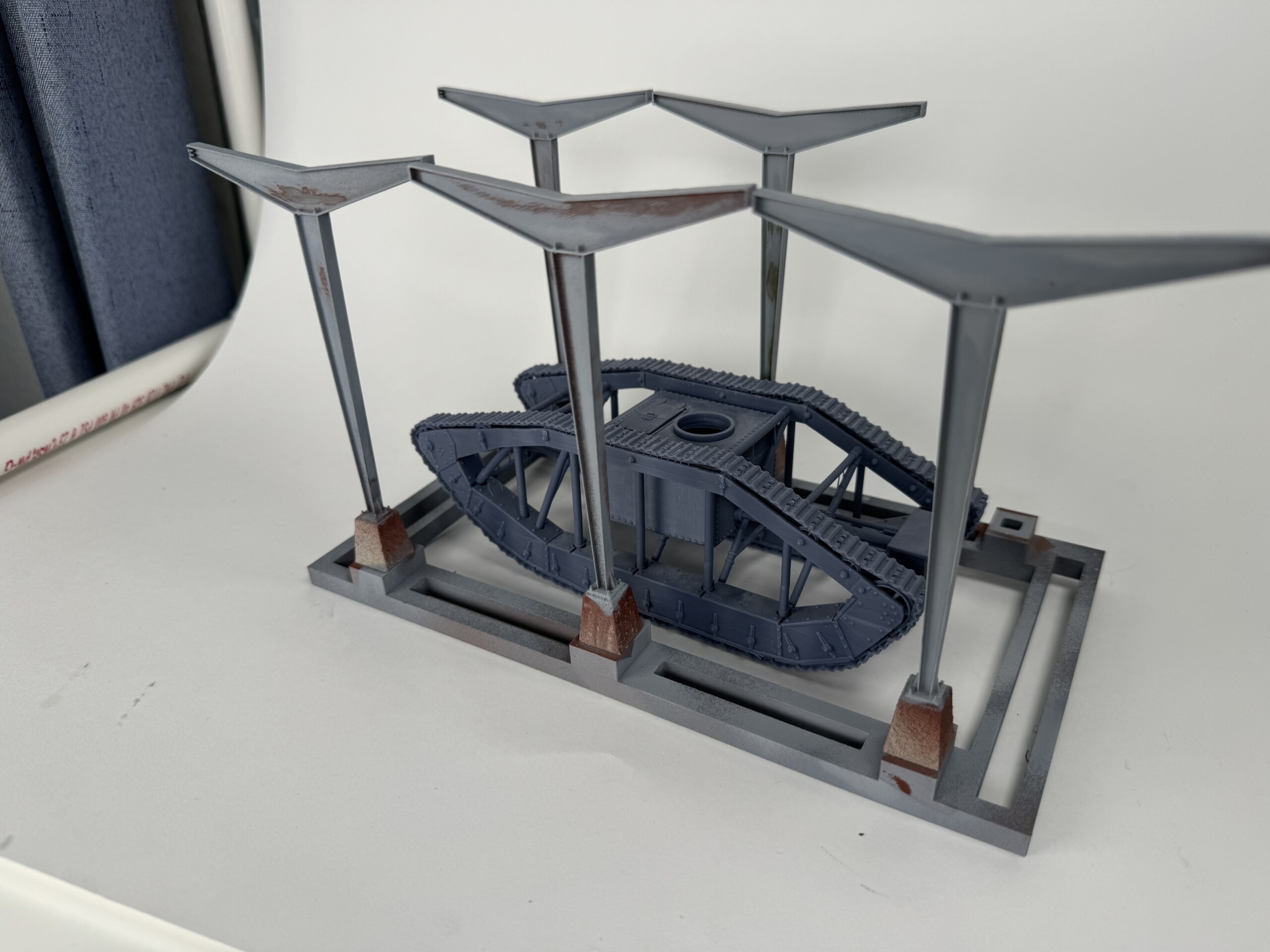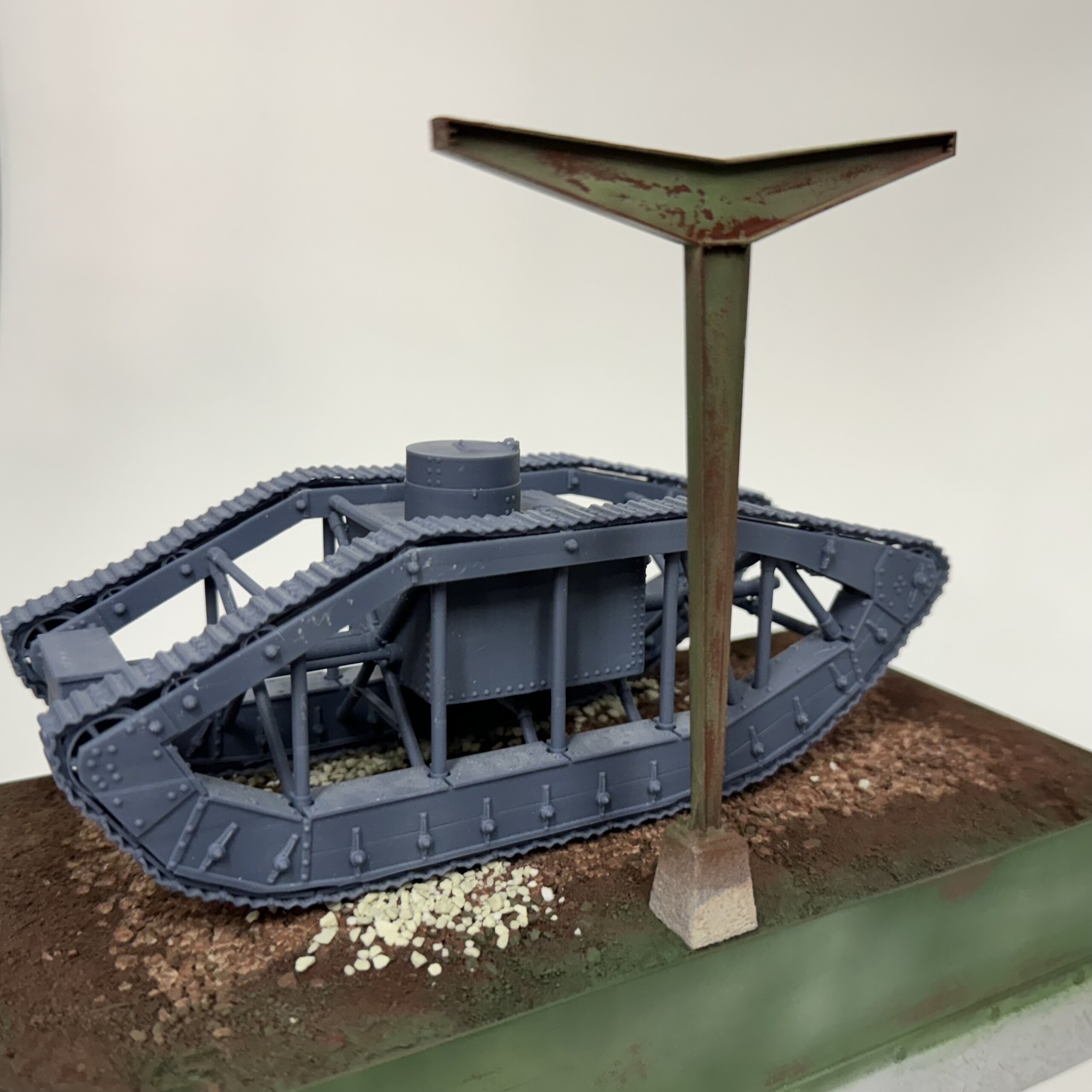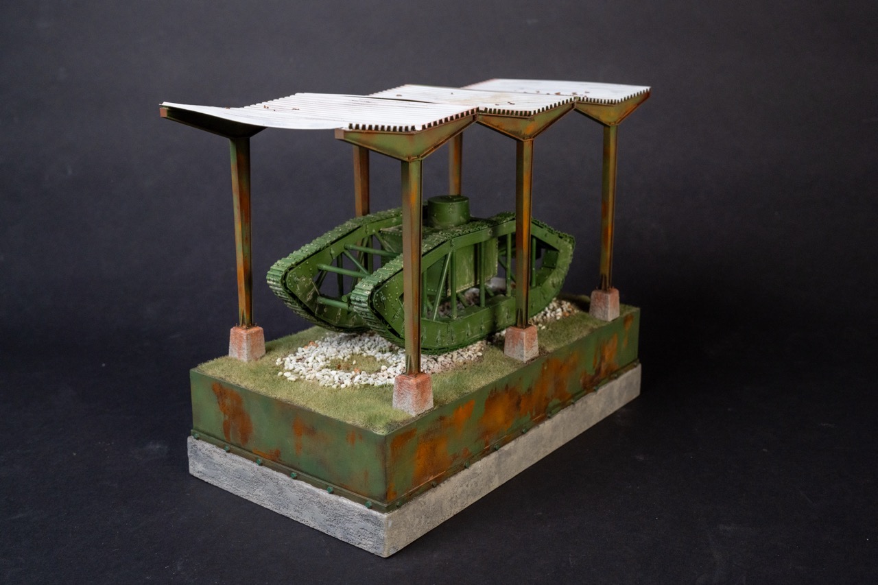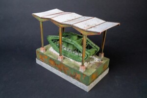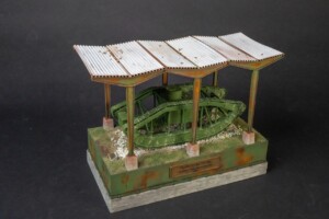 At last year’s IPMS Nationals I picked up a Vargas Models WWI Skeleton Tank kit and was excited to build it. But I wasn’t sure exactly what to do with it. It was a single prototype so it didn’t see combat. (More info here) When doing some googling, I found pictures of the tank on display at Aberdeen Proving Ground with a simple cover structure. I knew I had to make it.
