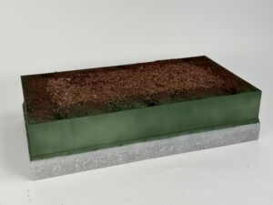 - Base – designed to look like concrete at the bottom and rusty, outdoor display metal on top.