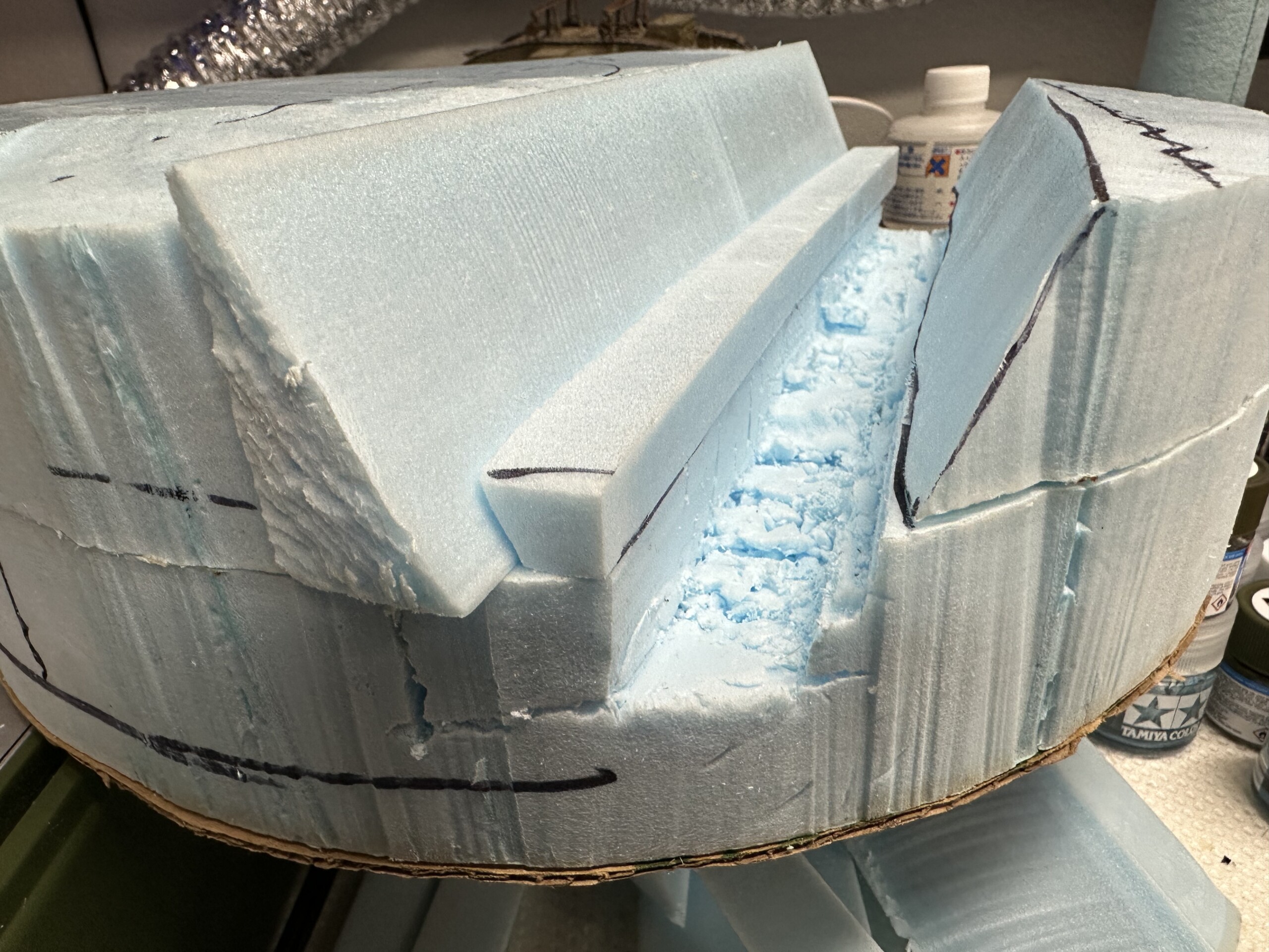 This was one of those projects where I wasn’t 100% clear what I was making until I started making it. And even then I did a fair amount of modifications until I got something liked. For me, visualizing how the trench would run couldn’t happen in the abstract. I had to start cutting foam. And cut I did…