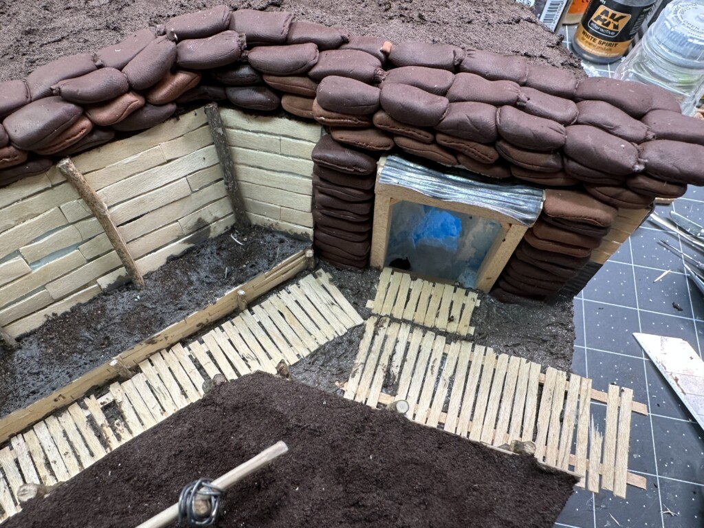 I also inserted a “view box” (or whatever it’s called, where the soldiers put wooden boxes they threw together in the sandbags to they could peer out without getting their heads shot off.