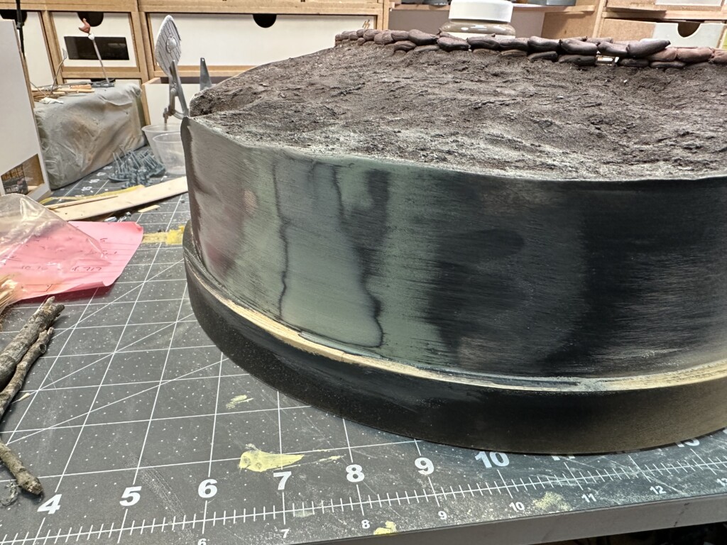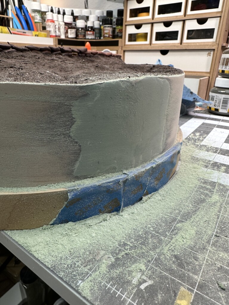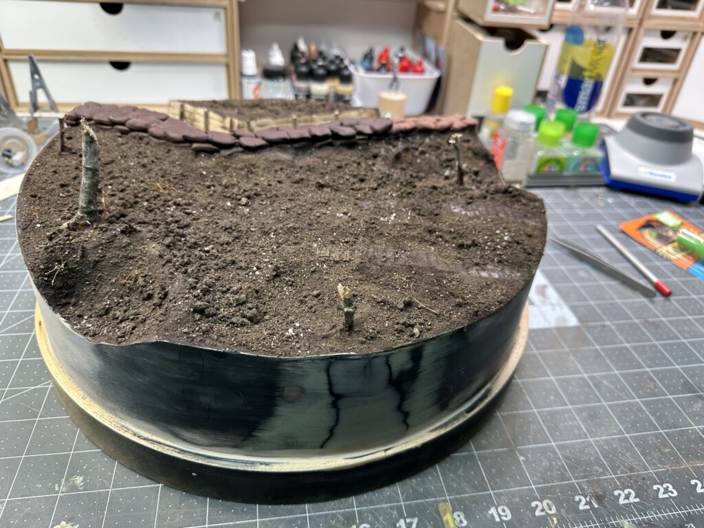 Next came the ground work… the step up firing ledge was originally laid out with Mig Ammo Dry Earth. I’m not much of a fan of this stuff… far too rubbery. I might have other applications for it, but this didn’t work great for me. The rest of the diorama was covered in one of the most amazing modeling products I’ve found to date: VMS Smart Mud 2.0. Thanks to Uncle Nightshift for this recommendation. He’s not kidding about how good it is.  It lays down easily, spreads easily, and dries rock hard with a wonderful texture. A few tips tho: