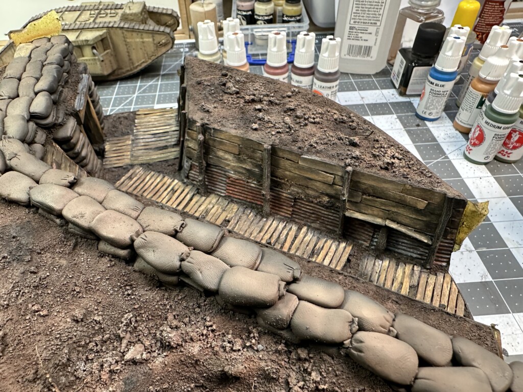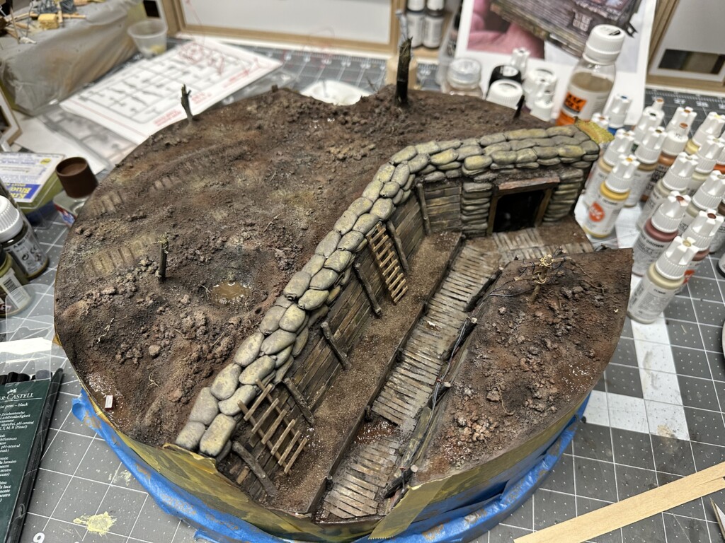 In doing some research about the trench accessories, I was watching “1917”. I noticed how damn orange the soil was. Like REALLY orange. So I eventually came back in with the airbrush and laid down quite a bit of orange tones too. This helped make the ground look more compelling.
