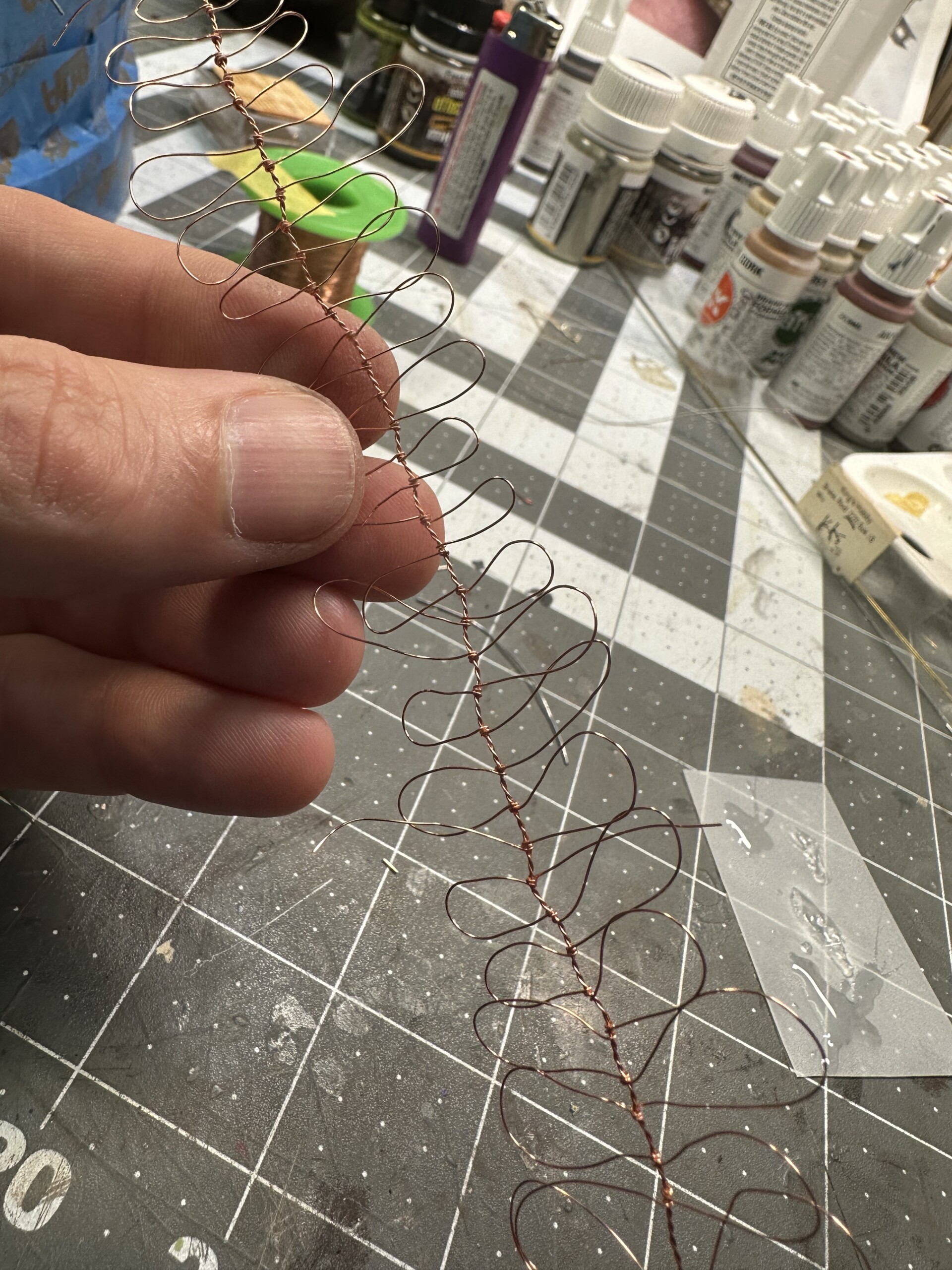 • When you’ve done this for the entire strand, clip the wire loops off and you’re left with barbs. Make sure to clip consistent lengths.