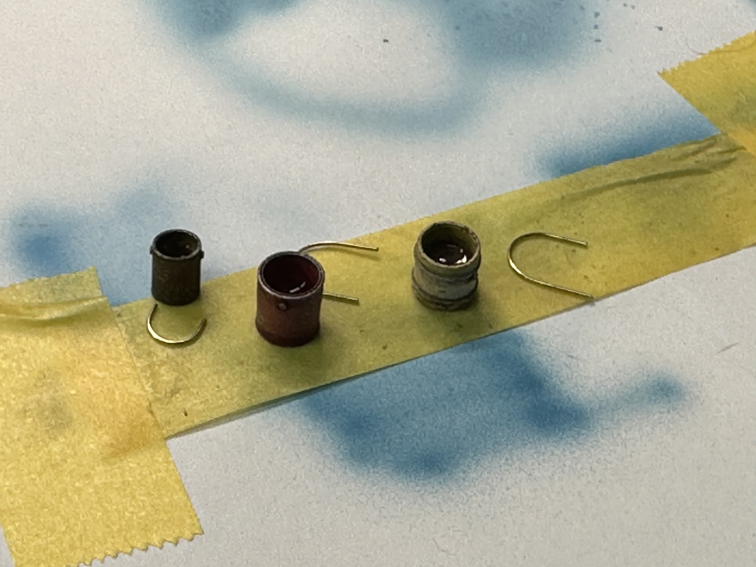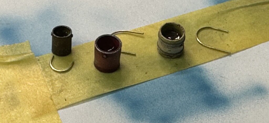 I also bent up some poles that were used to lay the barbed wire in the right place. The poles were just brass wire bent around a simple jig then painted black.